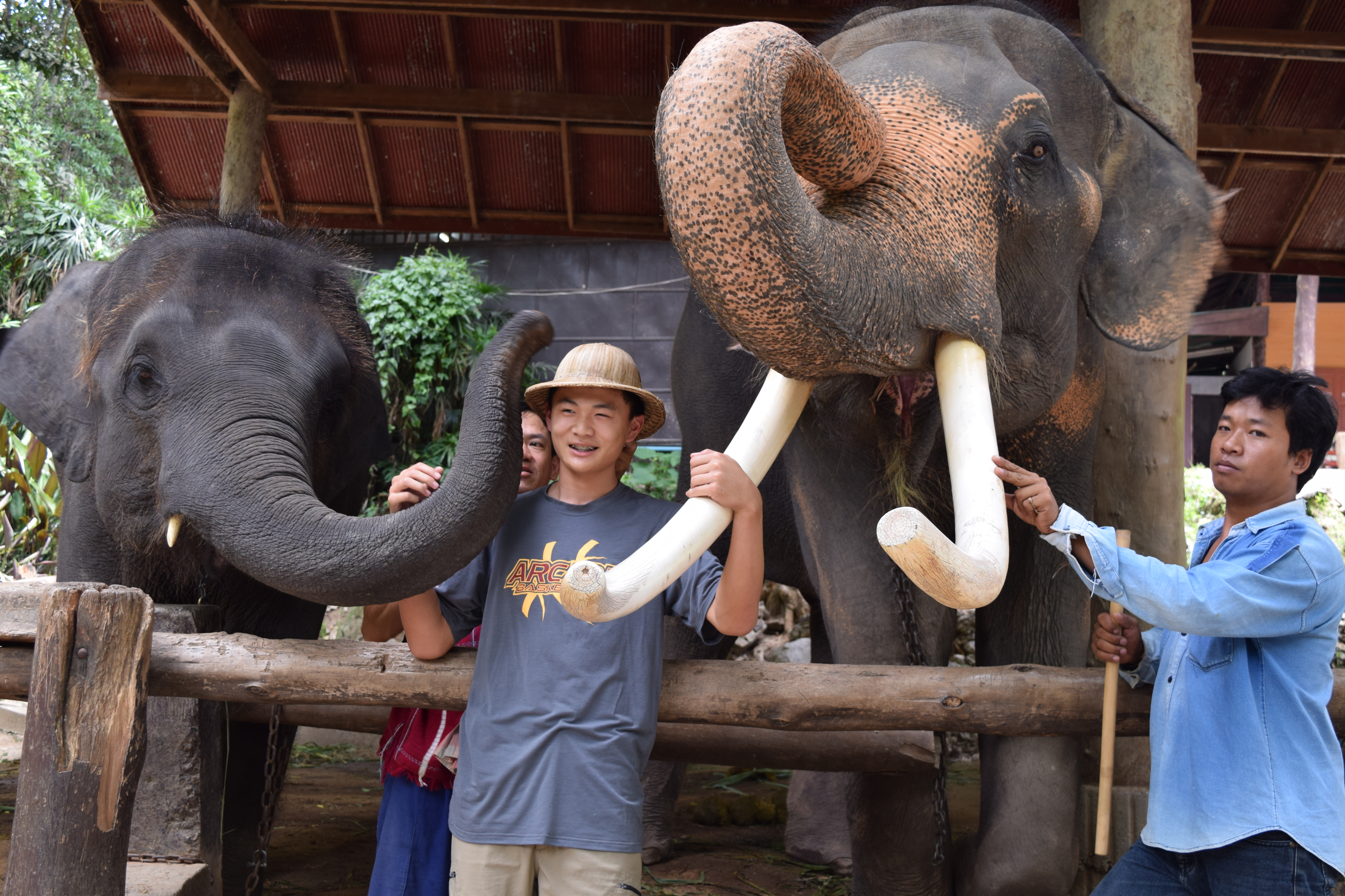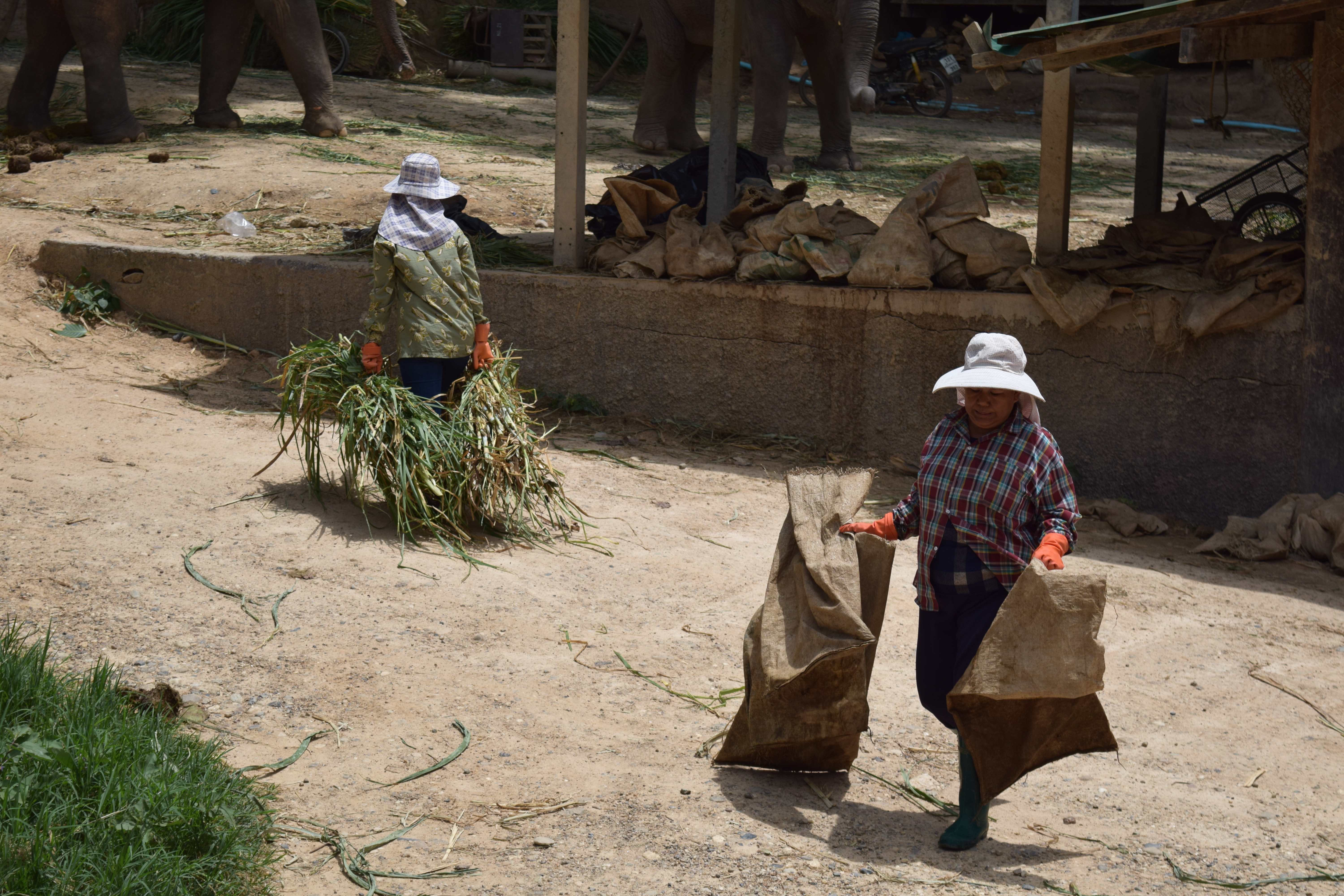 Jia Mei tells us that the people who works at the elephant farms aren’t Thai, but Burmese. She says that most Thai people don’t want to do this line of work. The men here train the elephants while the wives/women feed them and clean up their poop.